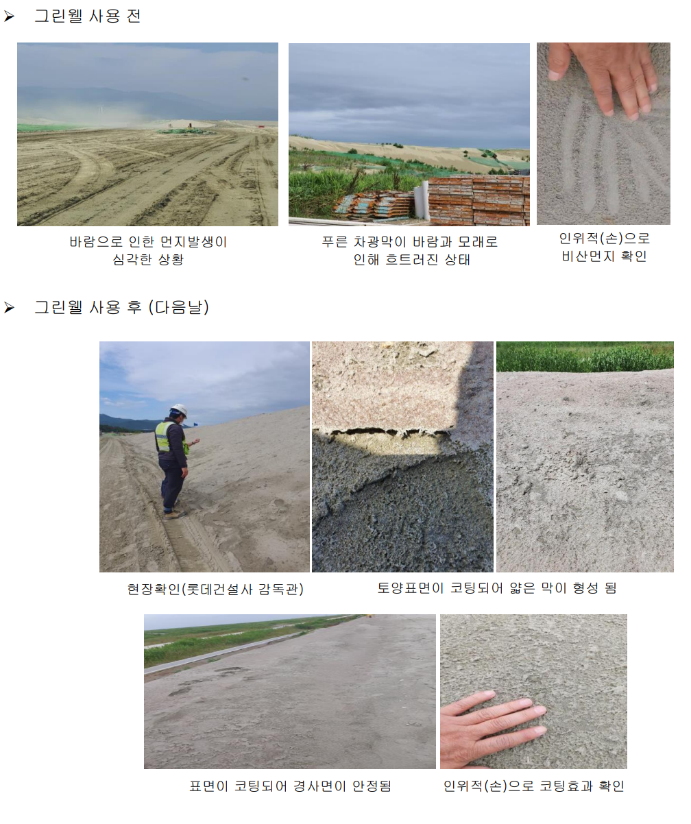1. 화학 물질이 전혀 들어가지 않은 100% 친환경 토양표면 코팅 섬유유기 자재입니다. 2. 토양과 담수 및 해수에서도 생 분해되는 식물 추출물로 구성되어 있으므로 토양의 오염이나 신체부위에 닿아도 부작용이 전혀 없는 제품입니다. 3. 공사현장이나 공장 등에서 먼지를 발생시키는 부분에 뿌려 줌으로써 피해를 해결해 줄 수 있습니다. 4. 기존 정해진 사용량보다 과하게 사용되었더라도 토양표면 코팅은 더욱 두꺼워지며 토양에는 부담이 가지않는 장점을 가지고 있습니다.